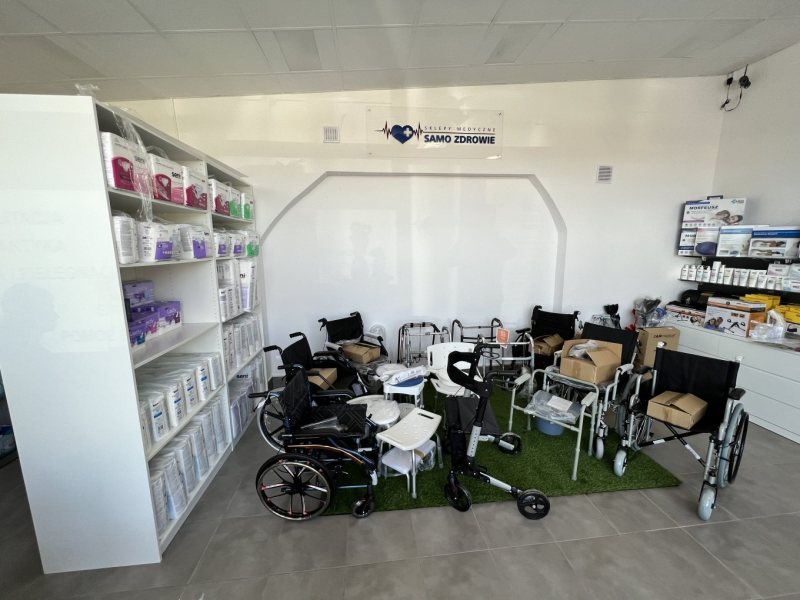 - W naszej ofercie znajdą Państwo produkty dla amazonek, protezy piersi, peruki... ponadto wózki, kule, balkoniki, akcesoria pomocnicze, łazienkowe, produkty do pielęgnacji... Specjalistyczny sprzęt dla osób leżących. Łóżka rehabilitacyjne, materace przeciw odleżynom. W najbliższym czasie będzie można nabyć u nas akcesoria i zestawy infuzyjne do pomp insulinowych. Zbliża się jesień, czas infekcji i zapewne powrót covid19. Dlatego dysponujemy też koncentratorami tlenu wspomagającymi oddychanie, potrzebnymi w tlenoterapii, czy pulsoksymetry, aparaty do mierzenia ciśnienia...