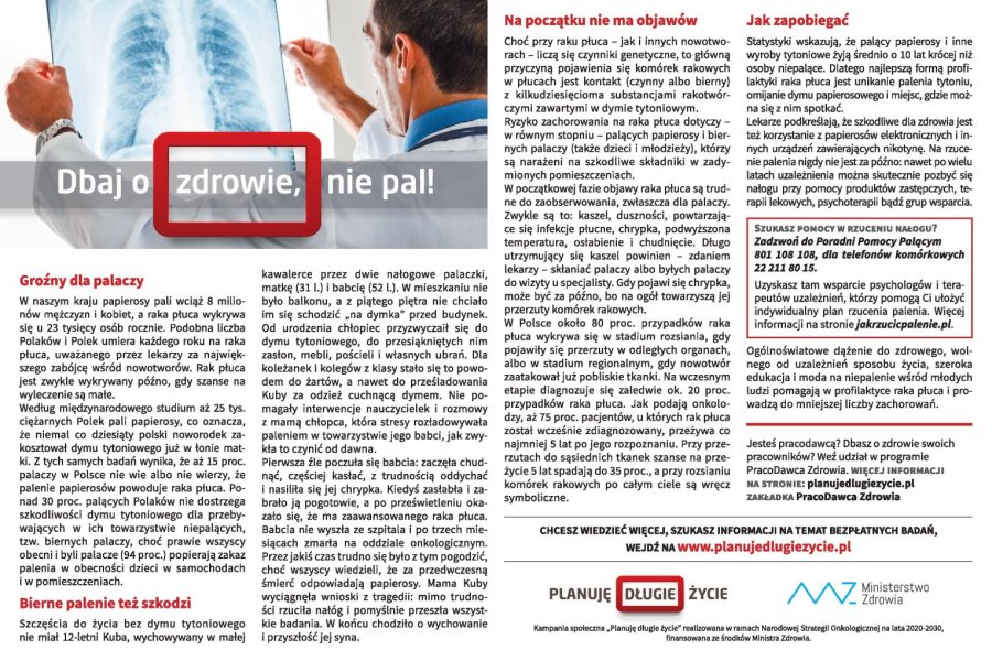 Kampania społeczna „Planuję długie życie” realizowana w ramach Narodowej Strategii Onkologicznej na lata 2020-2030, finansowana ze środków Ministra Zdrowia.