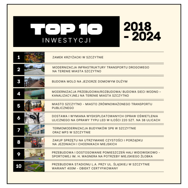 To czas wielu zmian w naszym mieście. Tak wysokiego tempa inwestycyjnego nie było nigdy wcześniej w ponad trzydziestoletniej historii szczycieńskiego samorządu. Wartość przeprowadzonych inwestycji przekroczyła 118 milionów złotych, z czego ponad 95 milionów złotych to środki pozyskane zewnętrznie na inwestycje i inne prospołeczne działania miasta. Myślę, że wszyscy możemy być z tego dumni.