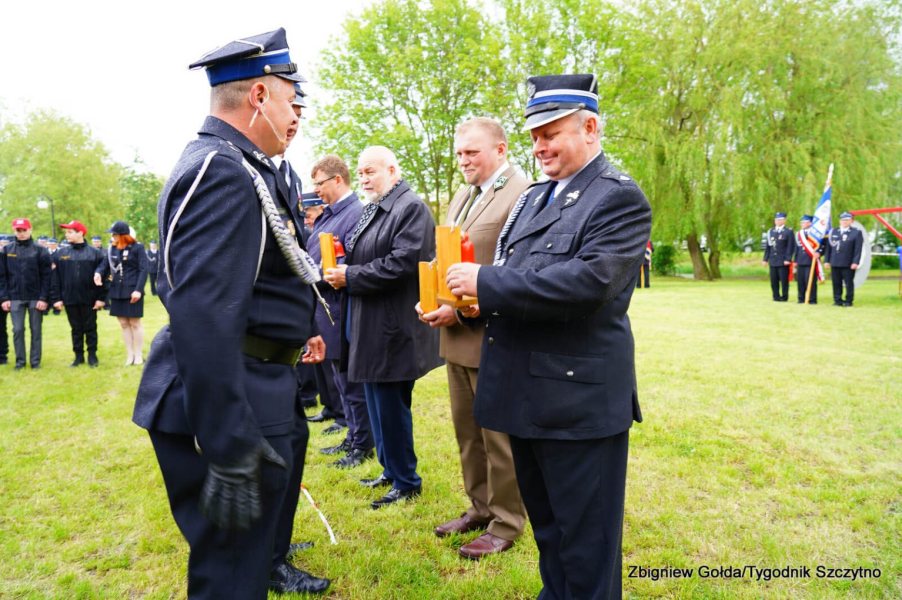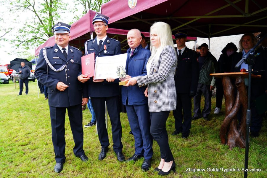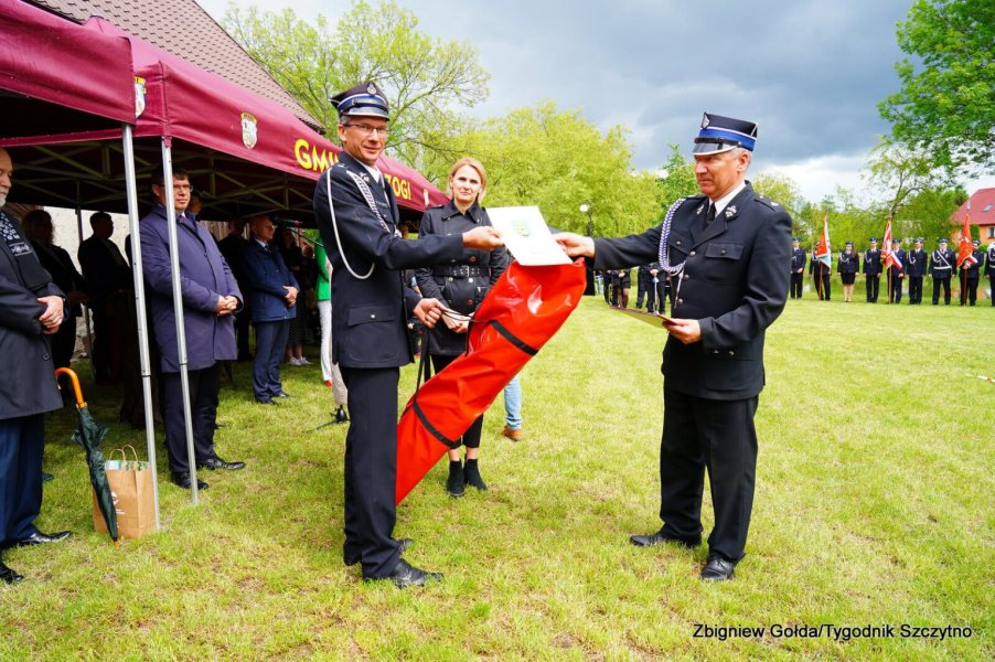 Goście przywieźli strażakom też prezenty: starosta Jarosław Matłach podarował jednostce 3 tys. zł, gmina Rozogi przekazał druhom parawan do zabezpieczania miejsca akcji, z kolei zaprzyjaźniona gmina Dźwierzuty podarowała druhom z OSP Wilamowo strażackie węże...