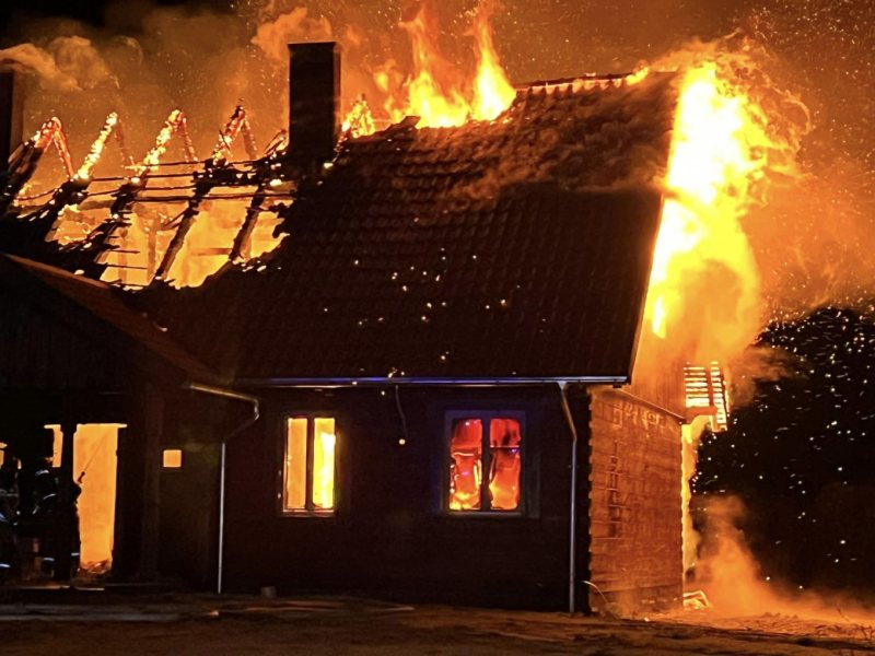 - Zgłoszenie trafiło do nas o 22:11 – mówi kapitan Łukasz Wróblewski z KP PSP w Szczytnie. - Pierwsze jednostki były na miejscu o 22:23. Budynek o wymiarach 10 na 15 na 5 metrów był cały w ogniu. Pożar był w pełni rozwinięty. Ogień wychodził przez dach i okna – dodaje.