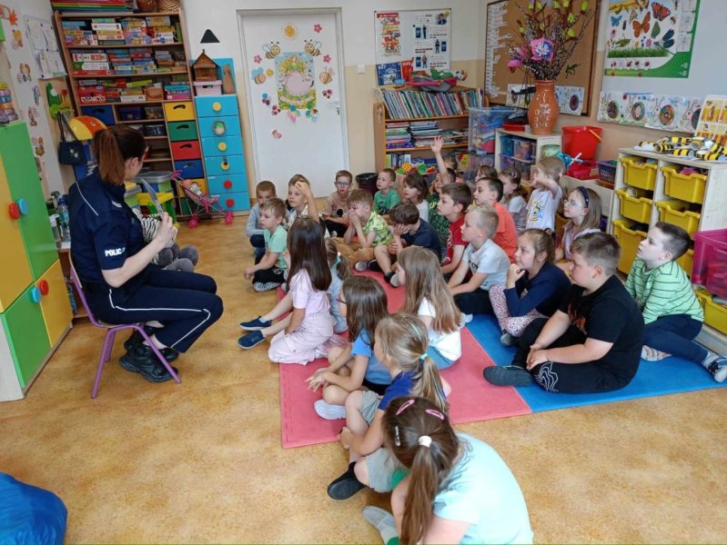 Policjanci wskazywali, jak przeciwdziałać niebezpieczeństwom oraz jakie działania podjąć w sytuacjach zagrożenia. Takie przygotowanie ma na celu umożliwienie najmłodszym beztroskiego spędzenia wakacji.