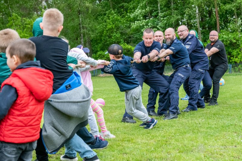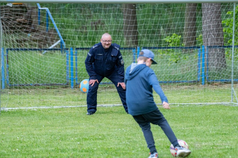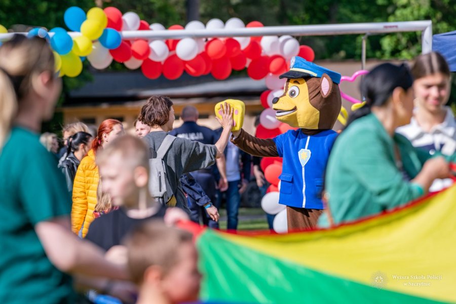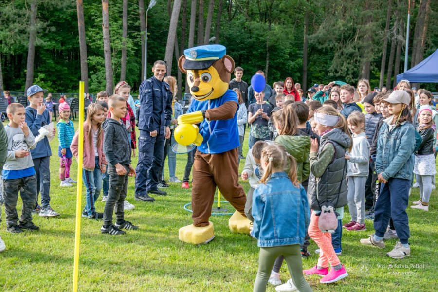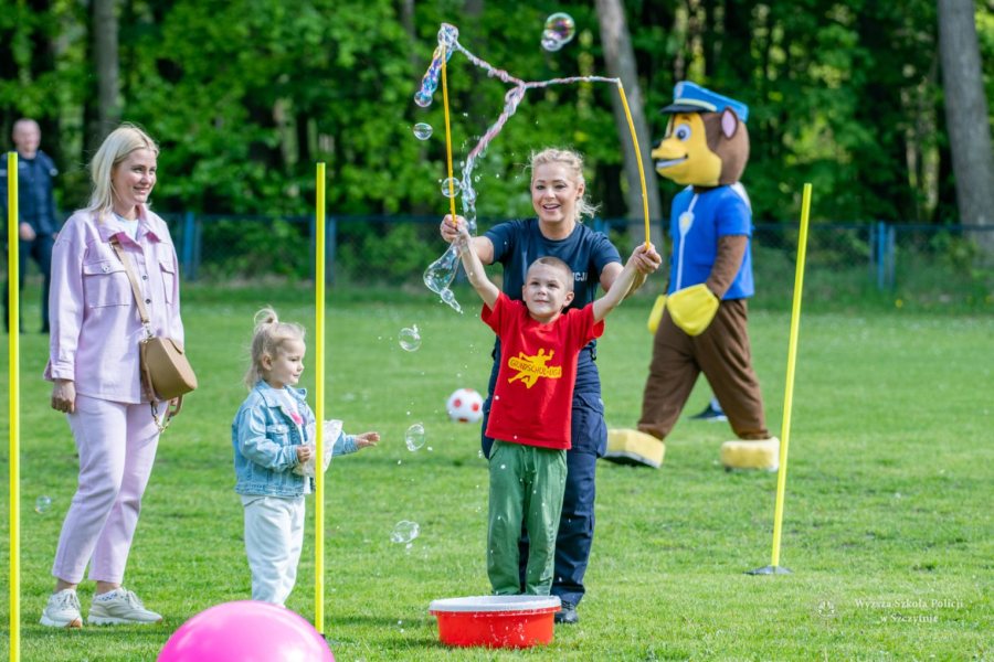 Największą frajdę dzieciom sprawiły jednak gry i zabawy z animatorami i policjantami, szczególnie tymi przebranymi za maskotki Psa Chase`a z Psiego Patrolu oraz Pandę. Wyścigi na torach przeszkód, animacje z kolorową chustą, modelowane balony, gra w piłkę nożną, gdzie bramki dzielnie strzegł Zastępca Komendanta – Prorektor WSPol, zawody w przeciąganiu liny, gra w badmintona, puszczanie gigantycznych baniek mydlanych… To tylko część z wielu atrakcji przygotowanych przez słuchaczy i animatorów.