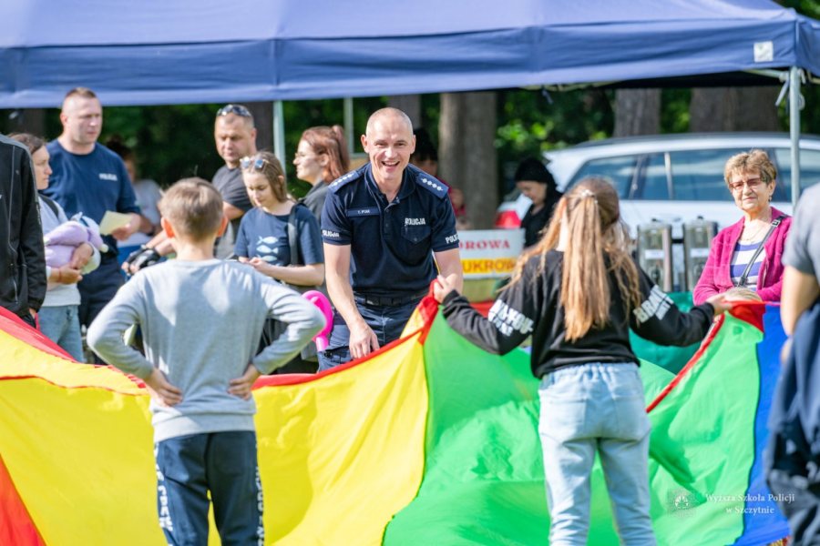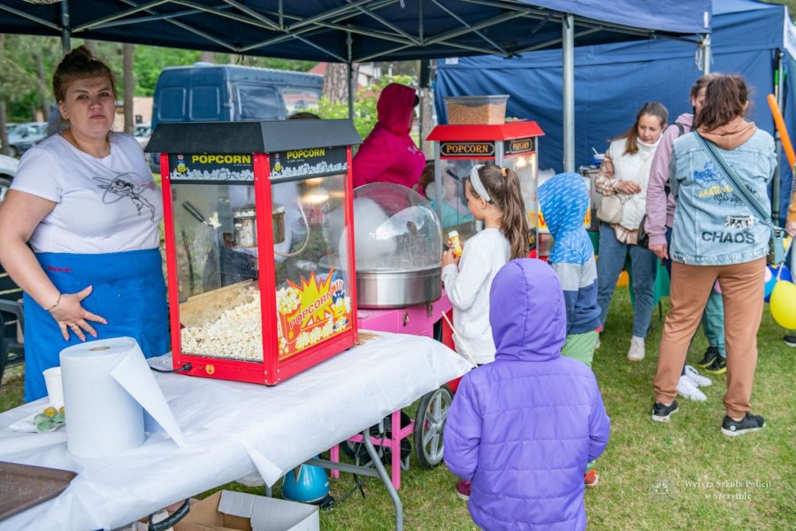 2 czerwca 2022 r. na stadionie Wyższej Szkoły Policji w Szczytnie odbył się piknik z okazji Dnia Dziecka. Pomysłodawcami i jednocześnie organizatorami byli policjanci realizujący szkolenie dla absolwentów szkół wyższych. Na uczestników pikniku czekały pyszne kiełbaski z grilla, wata cukrowa, popcorn, oraz niecodzienny „szwedzki stół” zapełniony różnego rodzaju słodyczami, owocami i napojami.