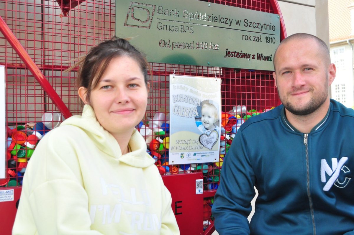 Jak wiemy, na leczenie Gabrysi idą też pieniądze ze zbiórki nakrętek. „Koszowe” serca na nie ustawione są przy domu kultury oraz Banku Spółdzielczym w Szczytnie. – Jedno z takich serc stoi też przed naszym domem – mówi Tomasz.
