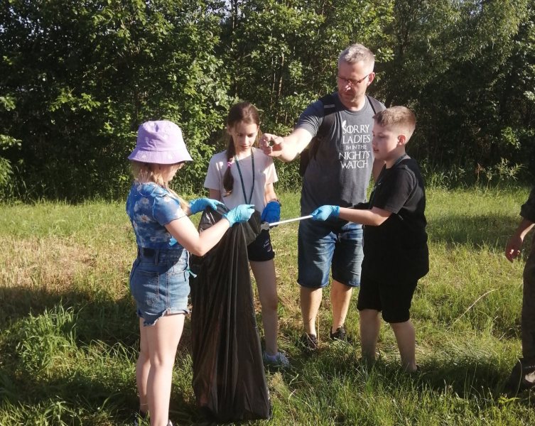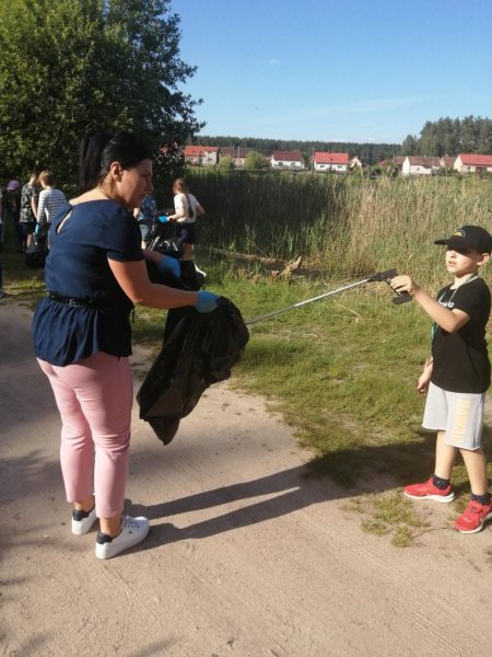 Uczestnicy wyposażeni w specjalistyczne chwytaki do śmieci, rękawice oraz worki sprzątnęli teren przy szkółce leśnej w Dębówku oraz wokół jeziora w Szczycionku. Zebrano kilka pokaźnych worków śmieci.