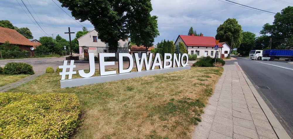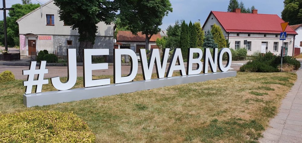 W ubiegłym tygodniu w centrum Jedwabna, na skrzyżowaniu dróg prowadzących do Szczytna Wielbarka, Pasymia i Nidzicy stanął ogromny witacz (napis) #JEDWABNO. Ma uatrakcyjnić turystycznie stolicę gminy.