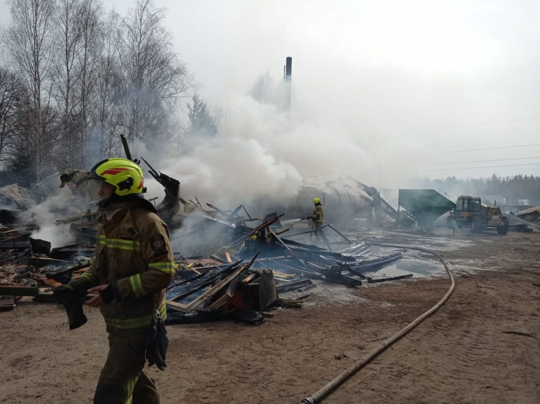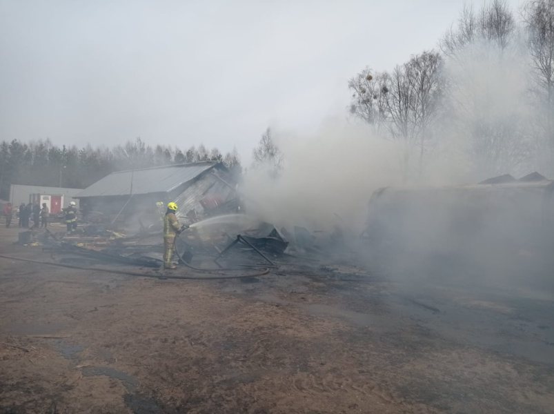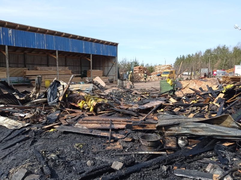 Palił się budynek drewniany, w którym znajdował się trak i składowane drewno (30 metrów sześciennych), płonął budynek warsztatu, budynek socjalny był objęty całkowicie ogniem – do środka zwaliły się blaszane ściany i dach. W ogniu była sąsiadujące z nim drewniana wiata ze ścianami blaszanymi, w których stały maszyny stolarskie oraz ciąg technologiczny do produkcji peletu. Płonęła suszarnia bębnowa, w której znajdował się taśmociąg.