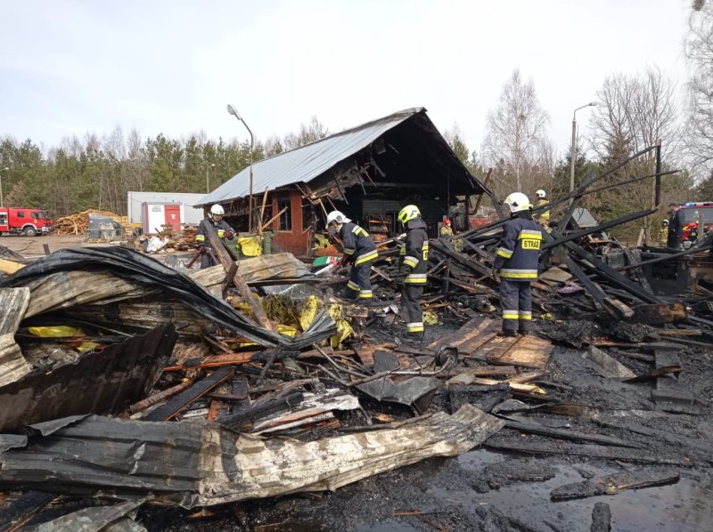 - Hala magazynowa wraz z wyposażeniem była cała w ogniu, jej ściany i dach zawaliły się wnętrza – mówi kapitan Paweł Kozłowski z KP PSP w Szczytnie.