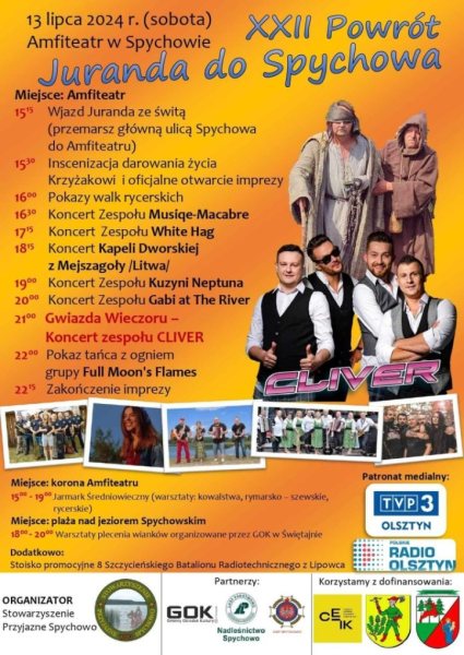W sobotę, 13 lipca w Spychowie odbędzie się wyjątkowe wydarzenie – XXII Powrót Juranda do Spychowa. Festiwal rozpocznie się o godzinie 15:15 barwnym wjazdem Juranda ze świtą, przemierzającym główną ulicą Spychowa do Amfiteatru. To zaledwie początek wielu emocjonujących atrakcji, które czekają na uczestników.