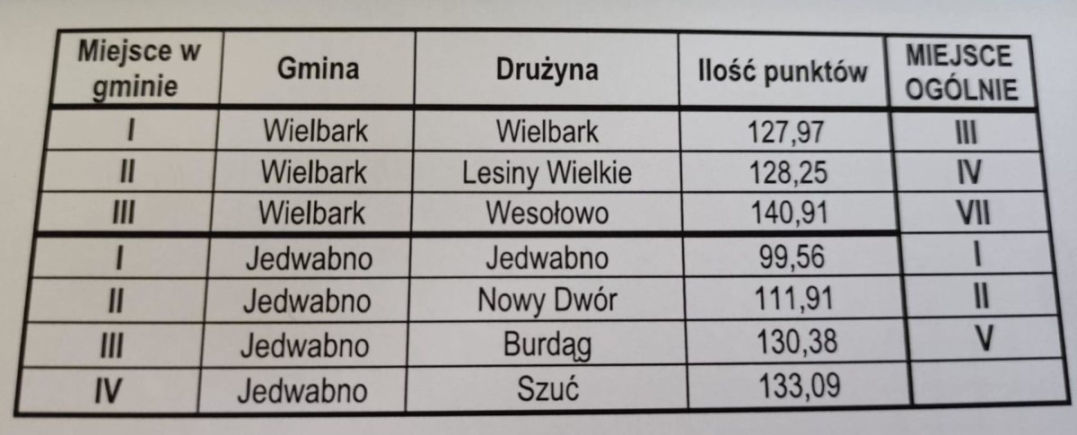 Forma wicemistrzów naszego województwa z 2018 roku pozostaje bez zmian. Ochotnicza Straż Pożarna w Jedwabnie z łącznym wynikiem 99,65 zajęło pierwsze miejsce zarówno w swojej gminie, jak i w całych zawodach. Skład OSP Jedwabno: Łukasz Drężek, Jacek Brzozowski, Radosław Wiśniewski, Mateusz Drężek, Rafał Malinowski, Marcin Zapadka, Adrian Gorząch, Kamil Wojciechowski, Michał Wojciechowski.