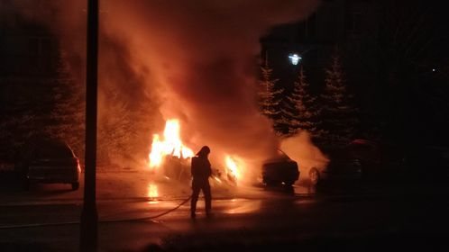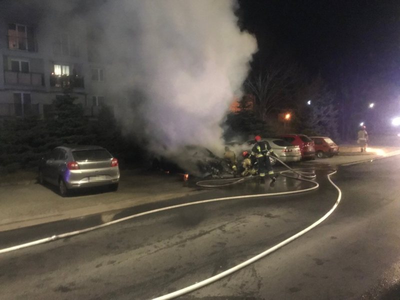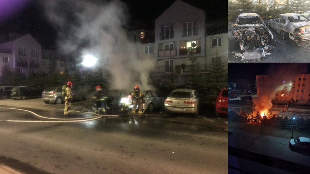 Dwa auta spłonęły w nocy na parkingu przy ulicy Solidarności w Szczytnie. Ogień zauważono około godziny 1 w nocy. Gdy na miejsce dotarli strażacy oba samochody były objęte ogniem już w całości.