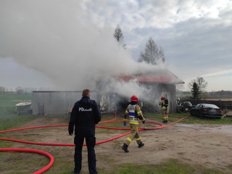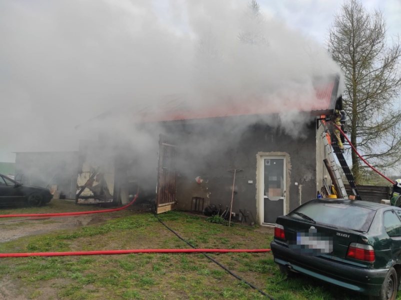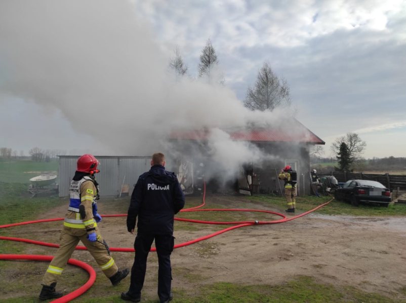- Zabezpieczyli teren i rozpoczęli działania obronne, aby ogień nie rozprzestrzenił się na pobliski dom mieszkalny – mówi kapitan Paweł Kozłowski z KP PSP w Szczytnie. - Po dojeździe jednostek ze Szczytna, Rańsk, Dźwierzut i Nowych Kiejkut rozpoczęto działania w natarciu. Podano dwa prądy wody na palący się budynek. Ogień udało się ugasić. Aktualnie trwają tam prace rozbiórkowe dachu warsztatu oraz wynoszenie i przelewania wodą rzeczy, sprzętu, który znajdował się w budynku.