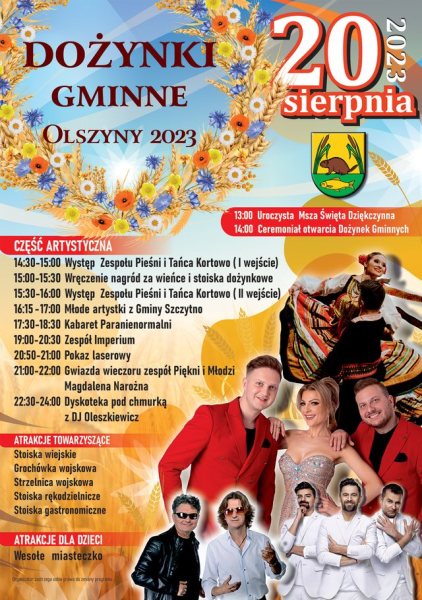 - Dożynki to nie tylko święto zbiorów, ale przede wszystkim podziękowanie za ciężką pracę rolników – mówi wójt Sławomir Wojciechowski. - W trosce o plony zmagają się z kaprysami pogody, niestabilnymi cenami, niepewnością, a mimo to pielęgnują swoje uprawy i dobytek okrągły rok. Po to, abyśmy mieli co jeść. Dziś w dobie marketów mało kto zdaje sobie sprawę z tego, że żywność pochodzi od rolników. Mleko nie jest z kartonika, a mięsko z zamrażalki w markecie... Dożynki to nie tylko krople potu w polu, to nie tylko symbol urodzaju. To wyraz wdzięczności i szacunku wobec tych, którzy z trudem przekształcają ziemię w chleb i przyczyniają się do naszego codziennego życia.