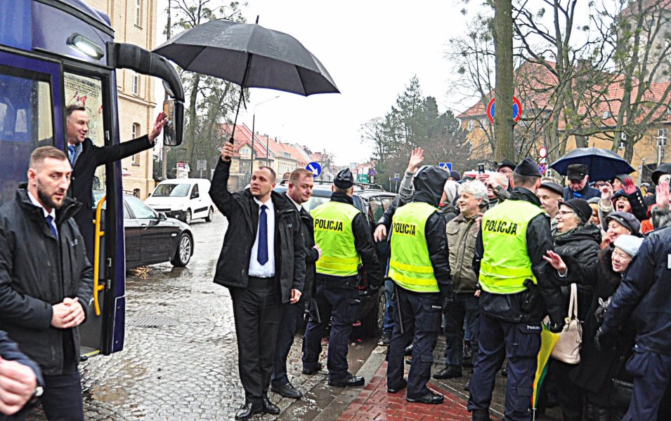 Prezydent Andrzej Duda odwiedził Szczytno. Najpierw spotkał się z kadrą i policjantami Wyższej Szkoły Policji w Szczytnie, a potem z mieszkańcami miasta. Po godz. 16 przed budynek Państwowej Szkoły Muzycznej w Szczytnie zajechał Dudabus. Mimo deszczu na prezydenta przed budynkiem czekało kilkadziesiąt osób, wewnątrz kilkaset.