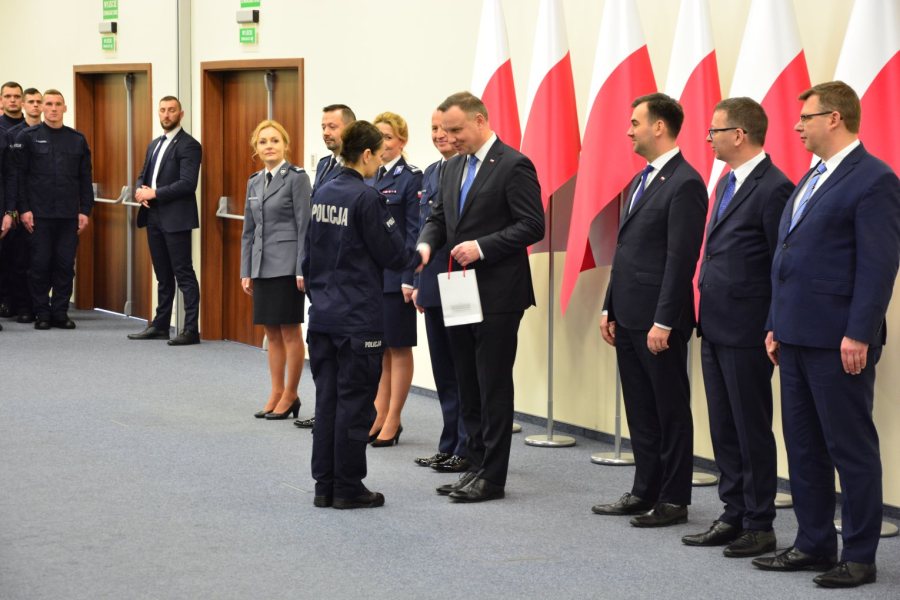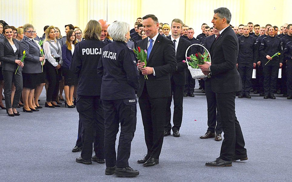 Podczas spotkania z funkcjonariuszami w Wyższej Szkole Policji w Szczytnie Andrzej Duda mówił o dalszej modernizacji i doposażaniu służb. Prezydent wręczył nagrody wyróżniającym się studentom WSPol-u, a kobietom kwiaty z okazji zbliżającego się Dnia Kobiet.