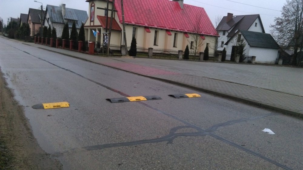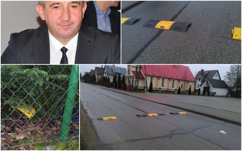 Mieszkańcy Olszyn od lat domagali się progu zwalniającego na drodze prowadzącej do placu zabaw i kościoła. Dwa miesiące temu próg został zamontowany. W weekendową noc ktoś go jednak zniszczył, a jego części wrzucił na posesję Jarosława Kostiuka, powiatowego radnego, który głośno domagał się progu zwalniającego.
