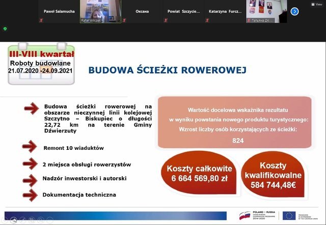 Miała miejsce się m.in. prezentacja projektu „Budowa ścieżki rowerowej na obszarze nieczynnej linii kolejowej Szczytno – Biskupiec, na terenie Gminy Dźwierzuty”. Omówiono także koncept szlaku rowerowego Yellow Velo/ Via Masuria - jako promocję dziedzictwa kulturowego, historycznego i przyrodniczego Południowych Mazur. Mówiono także o promocji turystyki transgranicznej na przykładzie regionu Warmia i Mazury oraz Obwodu Kaliningradzkiego, oraz o promocji turystycznej w oparciu o Strategię Terytorialną Partnerstwa Obszaru Funkcjonalnego Południowe Mazury.