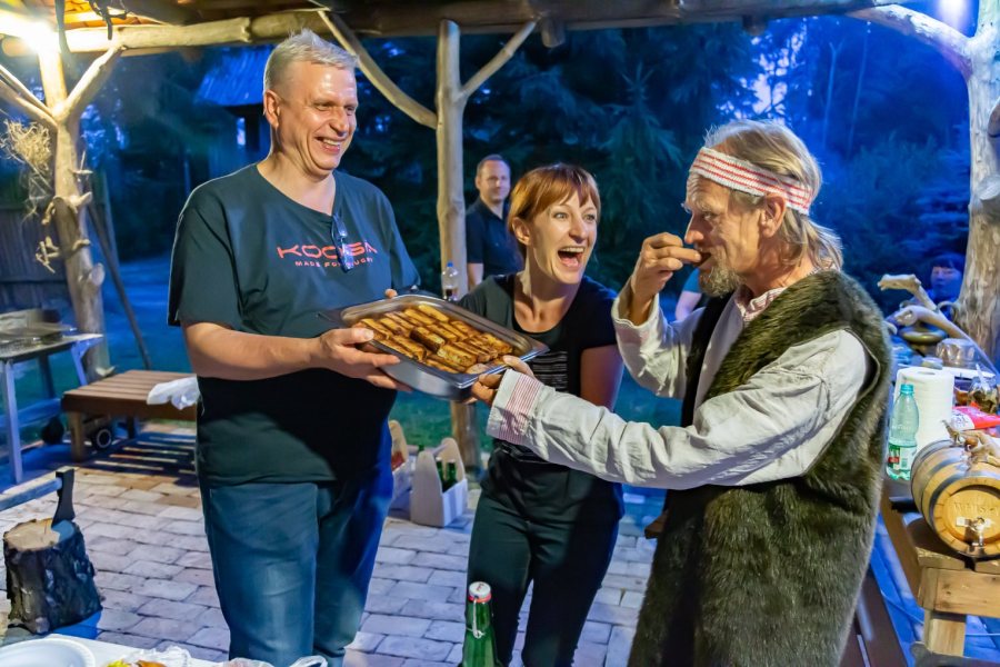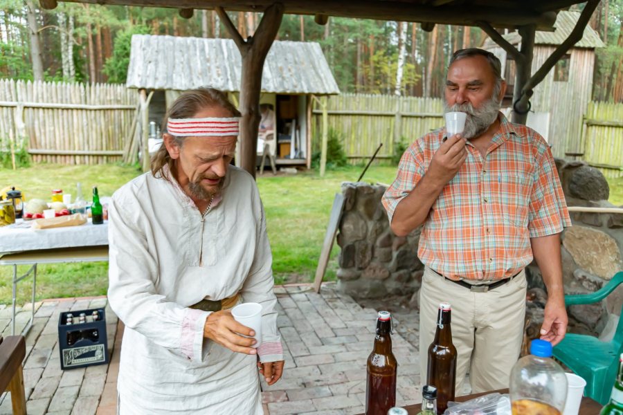 - Po tej części oficjalnej odbywały się zabawy i biesiady, czyli na przestrzeni nie tylko setek, ale i tysięcy lat, niewiele się zmieniło – dodaje ze śmiechem pan Kazimierz. - Punktem kulminacyjnym każdego takiego wydarzenia był toast ku czci bóstw, wznoszony pucharem miodu, bo tylko taki mocniejszy trunek dawni Prusowie znali.