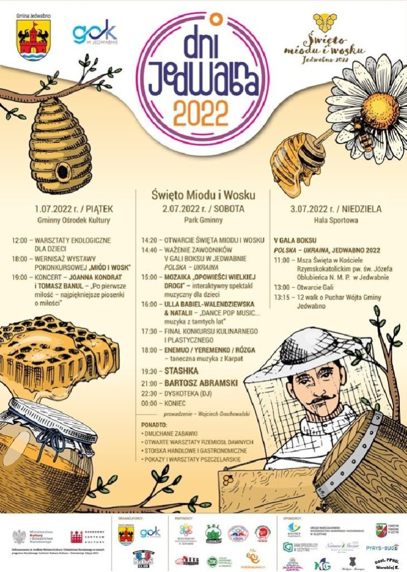 - W sobotę gmina będziemy obchodzić Święto Miodu i Wosku, podczas którego odbędą się koncerty muzyczne, pokazy i animacje dla dzieci – zachęca Adam Cudak, dyrektor GOK w Jedwabnie. - Nie zabraknie też stoisk handlowych i rękodzielniczych. Gwiazdami wieczoru będą STASHKA i BARTOSZ ABRAMSKI.