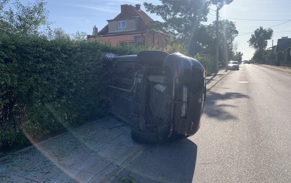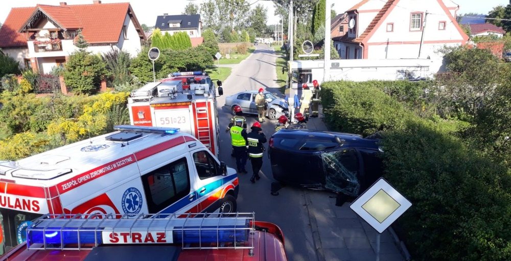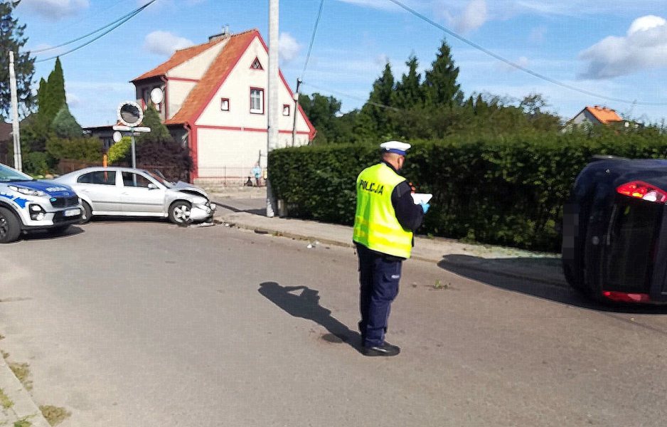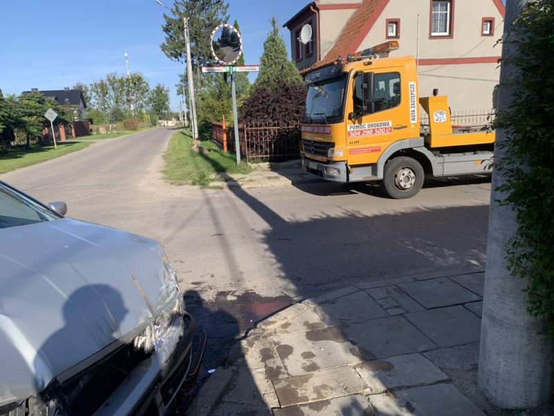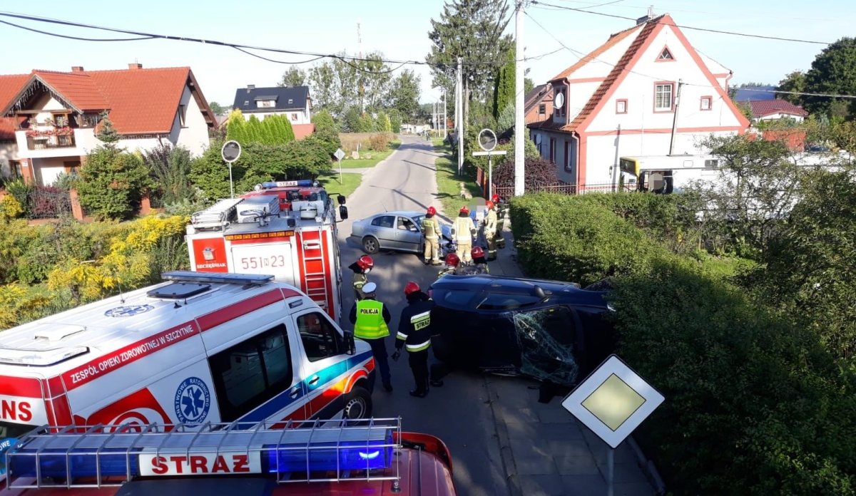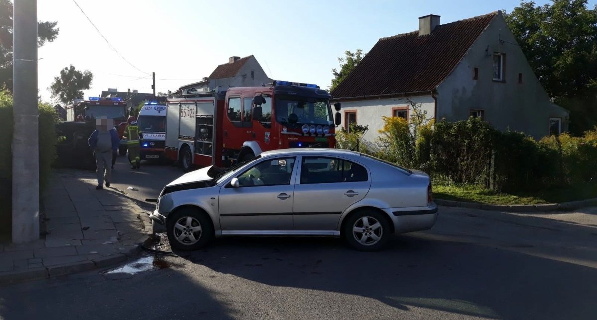 Samochód osobowy skoda octavia stał na skrzyżowaniu na kołach. Podróżowała nim jedna osoba, 60-letni mężczyzna. Był przytomny, o własnych siłach opuścił pojazd. Nie miał większych obrażeń.