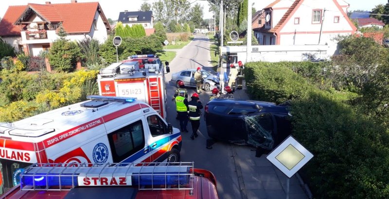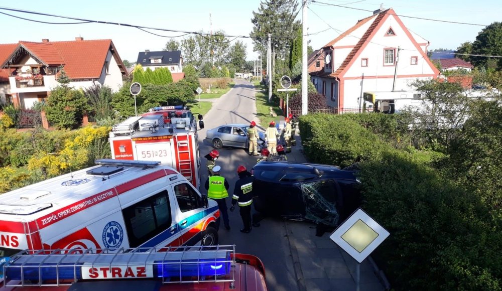 - Drugi samochód fiat punto leżał na prawym boku na chodniku – relacjonuje kapitan Łukasz Wróblewski z KP PSP w Szczytnie. - Podróżowała nim 49-letnia kobieta. Była przytomna i o własnych siłach opuściła pojazd. Uskarżała się na ból w klatce piersiowej.