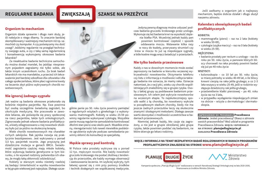 Kampania społeczna „Planuję długie życie” realizowana w ramach Narodowej Strategii Onkologicznej na lata 2020-2030, finansowana ze środków Ministra Zdrowia.