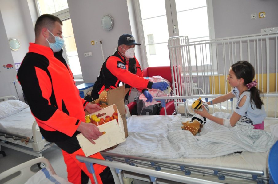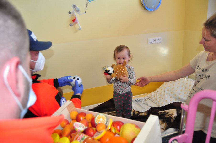 We wtorek, 1 czerwca oddział dziecięcy szpitala w Szczytnie odwiedzili ratownicy medyczni. Zanieśli tam kosz owoców oraz maskotki.