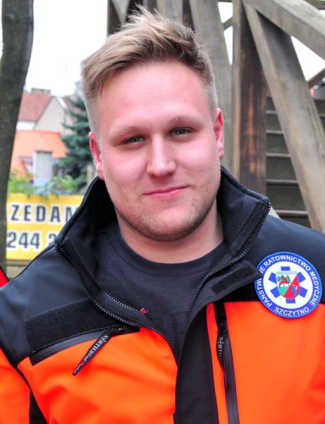 najmłodszy ze szczycieńskich ratowników, ma 26 lat i pracuje w szczycieńskim pogotowiu nieco ponad rok.