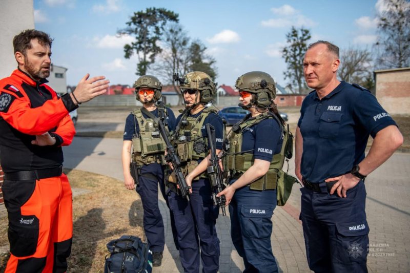 Ćwiczenia prowadził podkom. Dawid Żak, a w realizację scenariuszy włączyli się funkcjonariusze jednostki kontrterrorystycznej z Olsztyna. Podczas warsztatów uczestnicy ćwiczyli konkretne sytuacje operacyjne. Jedno z zadań polegało na udzieleniu pomocy policyjnemu pirotechnikowi w specjalistycznym kombinezonie ochronnym. Sprzęt znacząco utrudnia dostęp do poszkodowanego i wymaga szybkiej, dobrze skoordynowanej reakcji.