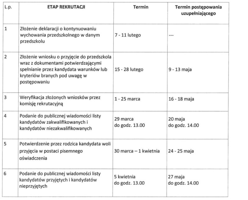 Zarządzaniem burmistrza z 21 marca miejski ratusz podał terminy rekrutacji uzupełniającej do miejskich przedszkoli na rok 2022/2023. Szczegóły poniżej w tabeli.