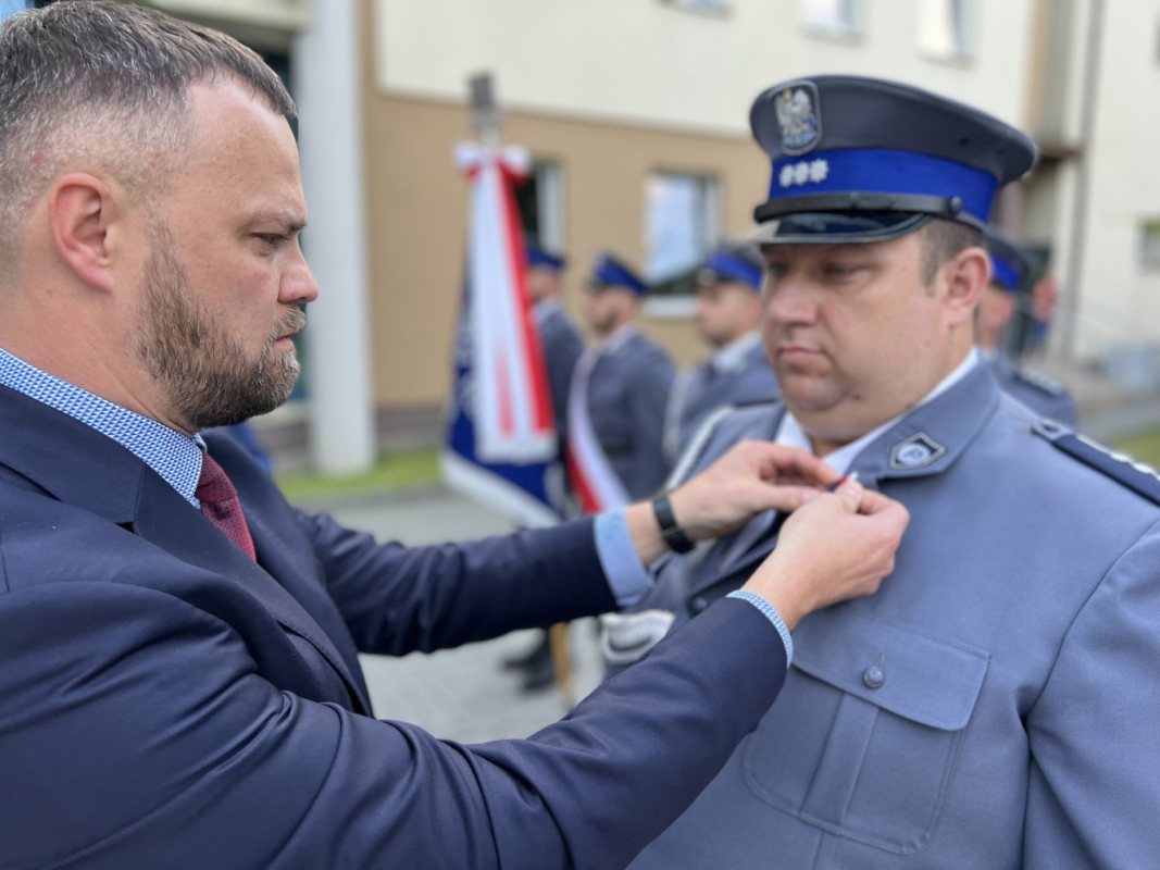 Po przemówieniu Komendanta uwaga wszystkich zebranych została skierowana na głównych bohaterów uroczystości. W tym roku z okazji Święta Policji, decyzją Ministra Spraw Wewnętrznych i Administracji Pana Mariusza Kamińskiego, Brązową Odznakę „Zasłużony Policjant” otrzymał asp. Piotr Soliwoda – kierownik Rewiru Dzielnicowych, w uznaniu szczególnych zasług w zakresie ochrony bezpieczeństwa ludzi oraz utrzymania bezpieczeństwa lub porządku publicznego. Odznaczenie to zostało wręczone przez Wicewojewodę Warmińsko-Mazurskiego, Piotra Opaczewskiego oraz I Zastępca Komendanta Wojewódzkiego Policji w Olsztynie, insp. Arkadiusza Sylwestrzaka.