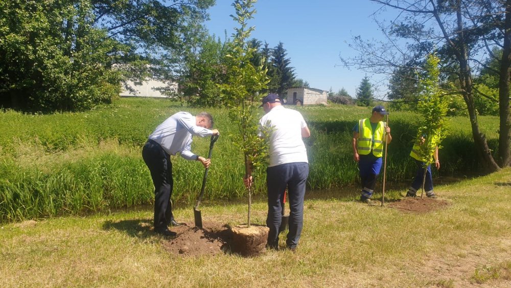 - Drzewa sadzili pracownicy tej instytucji, łącznie z dyrektorami oddziałów w Białymstoku i Ostrołęce, bo dawnemu województwu, pod względem gospodarki wodnej, Rozogi wciąż podlegają. - Oddziały Wód Polskich obejmują obszary mniej więcej zgodne ze zlewniami rzek, a Rozogi, czy raczej nasza rzeka Rozoga, należy do zlewni Narwi – tłumaczy wójt Zbigniew Kudrzycki, który zresztą też graby sadził. - Drzewa zostały posadzone na skarpie, jeszcze za linią wody, więc w terenie objętym działaniami Wód Polskich. Rozogi wybrano dlatego, że w ubiegłym roku w tym miejscu mniej więcej, sporo starych, uschłych drzew zostało wyciętych. Drzewa liściaste mają to do siebie, że dają dużo cienia, zatrzymują więc wilgotność w glebie.