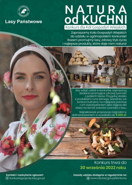 Startuje ogólnopolski konkurs Lasów Państwowych „Natura od kuchni” skierowany do Kół Gospodyń Wiejskich. Granty w wysokości do 5 tys. zł trafią do organizacji, które przygotują najciekawsze propozycje wypromowania zdrowej żywności z polskich lasów. Zaś dla wszystkich miłośników „dobrego z lasu” powstanie książka kucharska z regionalnymi, domowymi przepisami.
