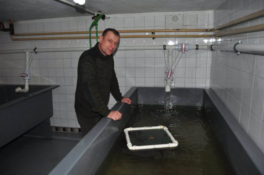 To się nazywa hodowla w obiegu zamkniętym. Woda ok. 4 m3, krąży w instalacji, podlega oczyszczaniu, natlenianiu i wraca do basenu. W tym basenie musi być utrzymywana stała temperatura, dość wysoka bo 25 stopni. Trzeba ją więc podgrzewać. Przez czas, który spędzą u mnie, powiększą swą masę jakieś 30 razy. A można też hodować te węgorze do momentu, gdy ich waga dojdzie do kilograma. To dość energochłonna hodowla, ale zamierzam założyć fotowoltaikę, więc te koszty z czasem się zmniejszą. Po prawdzie hodowlą węgorza zajmuję się krótko, może z miesiąc. Wcześniej hodowałem narybek siei, jesiotra... Każda z ryb ma swoje odmienne wymagania, które trzeba dokładnie poznać i się do nich stosować.