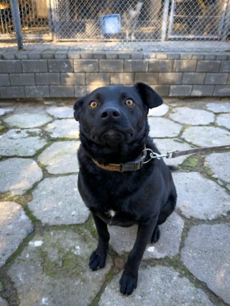 Średniej wielkości pies w typie terriera i czarnym umaszczeniu. Spokojny, wierny i łagodny – jest gotowy wprowadzić do domu harmonię oraz wiele czułości. Tęskni za miejscem, w którym zostanie kochanym członkiem rodziny.