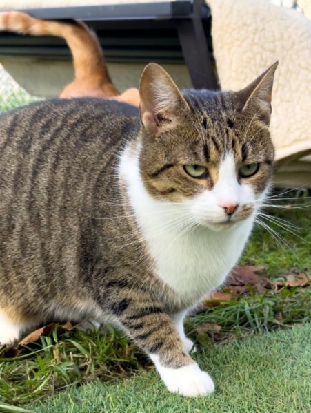 Młoda, energiczna kotka o biało burym futerku. Uwielbia zabawy i mizianie, szybko zaprzyjaźnia się z ludźmi i innymi zwierzętami. Da każdemu mnóstwo radości – to świetna towarzyszka zarówno dla dzieci, jak i dorosłych.