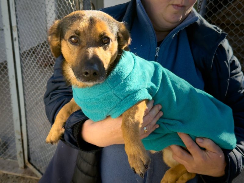 Młody, energiczny piesek o czarno podpalanym umaszczeniu. Jest bardzo towarzyski i łagodny, uwielbia spacery oraz wspólną zabawę. Z radością przywita każdego, kto okaże mu serce – to pies marzący o własnym, kochającym domu.
