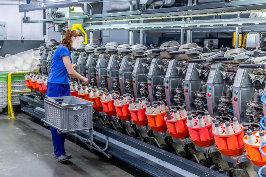 Niewiele. Są dwie duże firmy. Nasza i włoska. Są też trzy mniejsze firmy, ale one produkują tylko jeden rodzaj przędzy. Dlatego to u nas jest top przemysł, unikatowy na skalę światową.