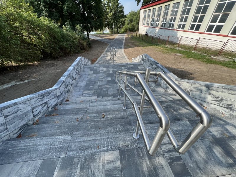 „Podjazd dla osób niepełnosprawnych przy schodach przy ulicy Konopnickiej nie został zaprojektowany ze względu na brak możliwości spełnienia obowiązujących warunków technicznych, spowodowany zbyt dużą różnicą wysokości pomiędzy wysokością chodnika przy ul. Konopnickiej, a wysokością chodnika przy jeziorze, która wynosi 3,6 m.