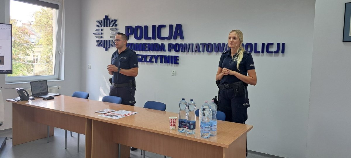 We wtorek, 6 sierpnia Komenda Powiatowa Policji w Szczytnie gościła seniorów z Klubu „Senior +” oraz Uniwersytetu III Wieku. Dzielnicowi st. sierż. Pamela Perdjon i asp. Kamil Niedziela przedstawili zebranym najczęstsze metody oszustw, takie jak: „na wnuczka”, „na policjanta”, „na pracownika banku”, „na Blika” oraz oszustwa za pomocą SMS-ów i fałszywych stron internetowych.