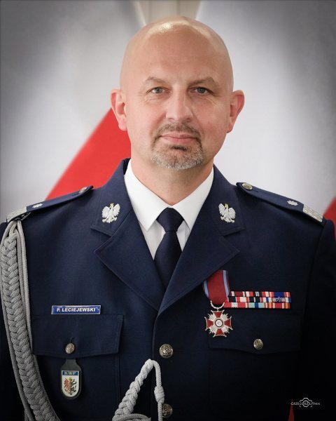 Ma 49 lat, a policyjny mundur założył 1 września 1993 r. Jest absolwentem Akademii Wychowania Fizycznego im. Eugeniusza Piaseckiego w Poznaniu oraz Wyższej Szkoły Policji w Szczytnie. Swoje kwalifikacje zawodowe podnosił, uczestnicząc w kursach, szkoleniach, a także kończąc studia podyplomowe. Zajmował m.in. stanowiska zastępcy naczelnika i naczelnika Sekcji Prewencji Komendy Powiatowej Policji w Gostyniu, zastępcy komendanta miejskiego Policji w Lesznie, komendanta powiatowego Policji w Śremie, komendanta miejskiego Policji w Lesznie oraz zastępcy komendanta wojewódzkiego Policji we Wrocławiu. 13 czerwca 2017 r. insp. Piotr Leciejewski został powołany na stanowisko I zastępcy komendanta wojewódzkiego Policji we Wrocławiu. Niespełna trzy lata później, 13 marca 2020 r., zostały mu powierzone obowiązki komendanta wojewódzkiego Policji w Bydgoszczy, a 21 maja 2020 r. minister spraw wewnętrznych i administracji powołał go na to stanowisko.