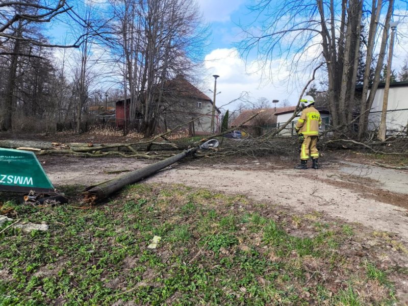 Silne podmuchy wiatru powodują liczne utrudnienia na drogach, łamiąc gałęzie i przewracając drzewa. Od wczesnych godzin porannych strażacy OSP prowadzą działania związane z usuwaniem zagrożeń i przywracaniem przejezdności.