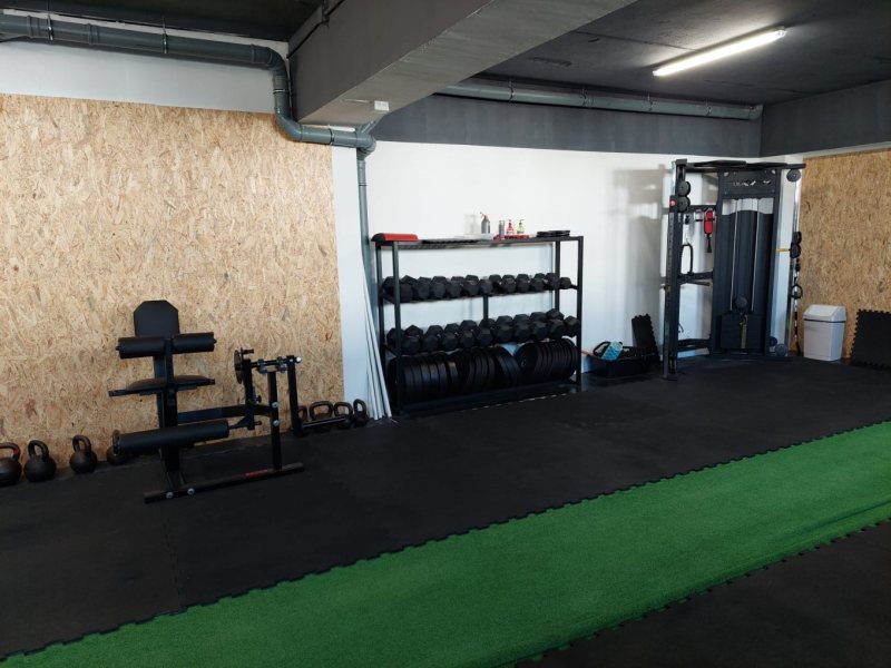 - dwóch Half rack-ów, na których wykonasz przysiady ze sztangą, wyciskania leżąc i stojąc, martwe ciągi, podciągania na drążku.