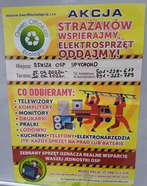 Strażackie zbiórki elektrosprzętu na terenie powiatu szczycieńskiego cieszą się sporym zainteresowaniem, a z akcji płyną same korzyści. Pozbywając się niesprawnego bądź zalegającego nam sprzętu jesteśmy w stanie odwdzięczyć się druhom za ich działalność. Pieniądze pozyskane ze zbiórki pozwolą na zakup dodatkowego sprzętu oraz ubrań ochronnych.