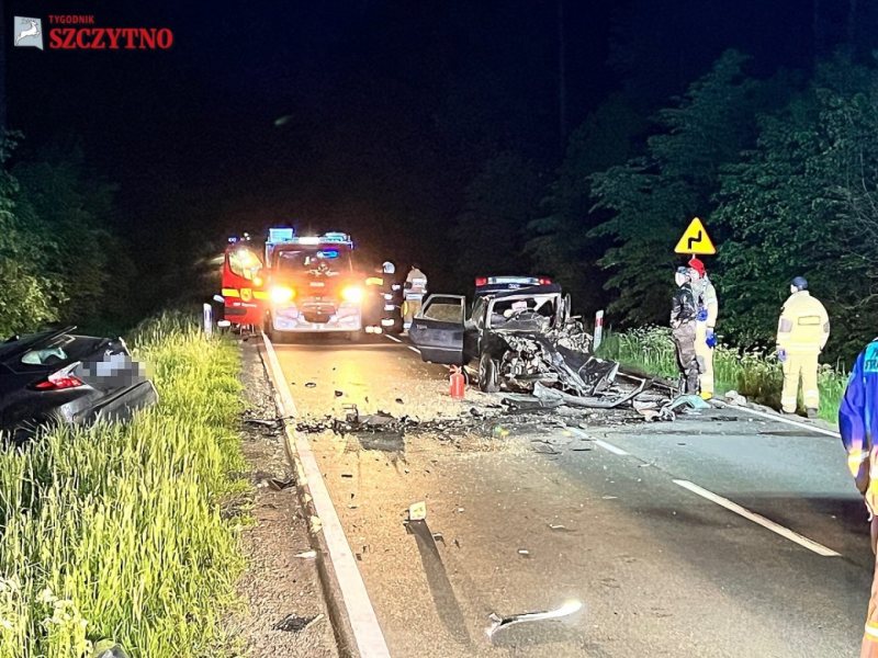 Do śmiertelnego wypadku doszło w czwartek, 25 maja około godz. 22 na drodze krajowej numer 57 pomiędzy Szczytnem, a Nowinami. Zderzyły się tam czołowo audi i toyota. Nie żyje kierowca audi. Kobieta i dziecko podróżujący toyotą trafili do szpitala. Droga jest całkowicie zablokowana.