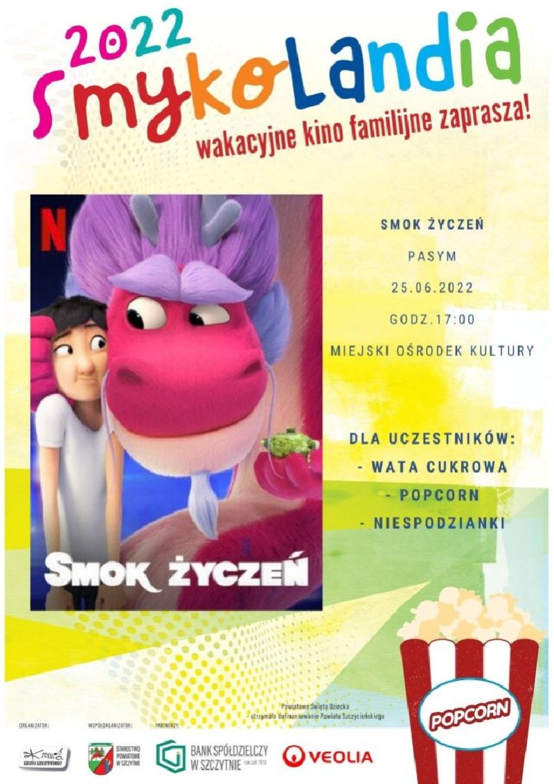 Już w najbliższą sobotę, 25 czerwca wystartuje Smykolandia 2022, czyli pokazy kina plenerowego dla najmłodszych. Pierwszy pokaz odbędzie się w pasymskim Miejskim Domu Kultury, o godz. 17:00. Zapraszamy serdecznie.