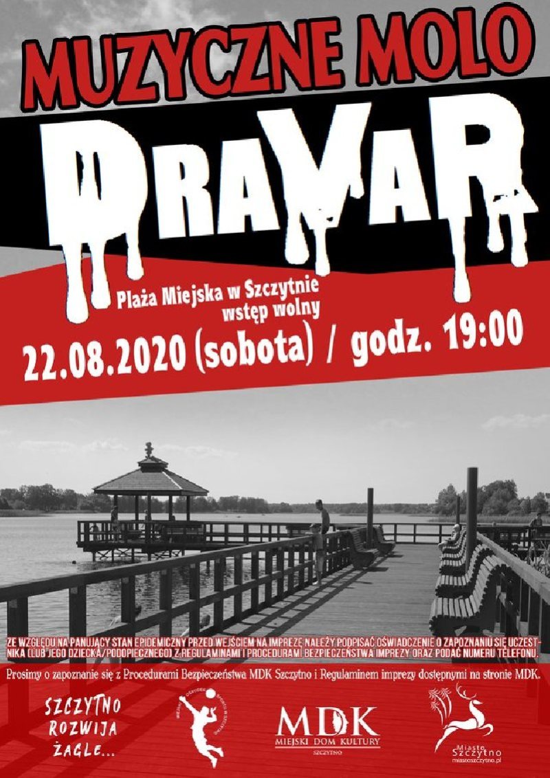 Przed nami kolejny koncert z cyklu "Muzyczne Molo". W sobotę, 22 sierpnia wystąpi rock-metalowy zespół DRAVAR. Początek koncertu godz. 19. Szczegóły na plakacie.