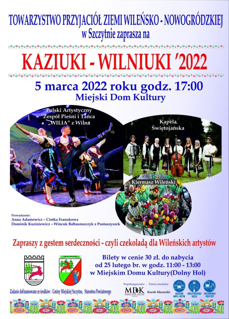 W sobotę, 5 marca o godzinie 17 w sali widowiskowej Miejskiego Domu Kultury w Szczytnie odbędzie się kolejna edycja koncertu pn. "Kaziuki - Wilniuki".