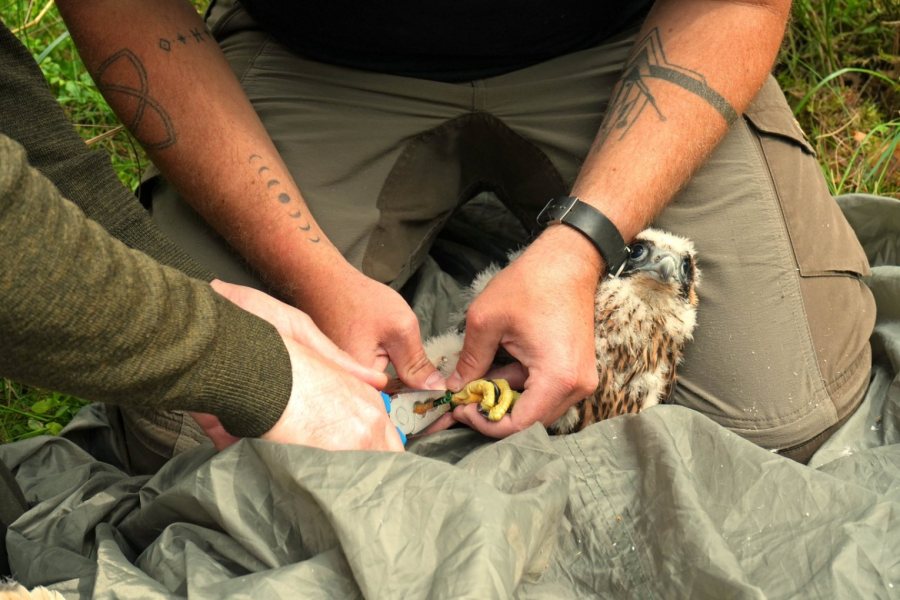 Sokoli rodzice – których tożsamość (jeszcze) pozostaje tajemnicą – nie budowali własnego gniazda, jak to mają w zwyczaju, lecz zasiedlili opuszczone gniazdo jastrzębia. I właśnie tam przyszły na świat trzy puchate sokoły. Dziś każde z nich nosi już obrączkę – dzięki zaangażowaniu ekspertów i ornitologów, którzy pojawili się przy gnieździe, by przeprowadzić pełną dokumentację.